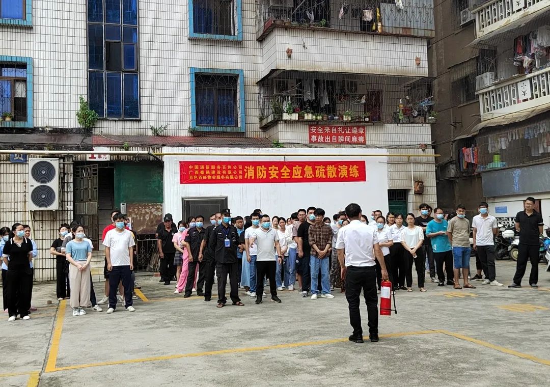 為切實(shí)加強(qiáng)項(xiàng)目安全管理工作,提升火災(zāi)應(yīng)急救援水平,提高員工消防安全意識(shí)和自救互救能力,6月28日上午,百旺物業(yè)公司聯(lián)合中國通信服務(wù)有限公司百色分公司、廣西泰通建設(shè)有限公司在老城片區(qū)電信項(xiàng)目開展消防安全應(yīng)急演練活動(dòng)。